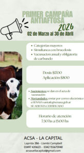 La campaña estará a cargo de ACSA – La Capital, con sede en Laprida 286, en Llambi Campbell. Para consultas, los productores podrán comunicarse a los teléfonos 03497 420623 y 0342 155675948.