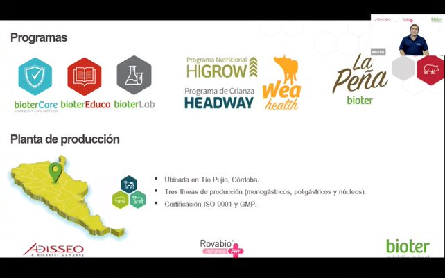 Para marcar esta asociación, las empresas promovieron una reunión técnica a través de una plataforma virtual con clientes y prospectos, en la que se compartió información sobre nutrición de precisión y el uso de enzimas en la cría de cerdos. Además del Director Comercial de Bioter, Carlos de la Torre, también participaron Juana González Chion, Coordinadora Técnica Comercial de Adisseo en Argentina, Santiago Capalbo, Director Técnico de Bioter, y Maria Garcia Spindola, Gerente Regional de Negocios de Digestibilidad de Alimentos para América Latina de Adisseo.